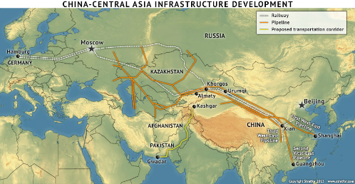 China-Central Asia Infrastructure Integrates the World Island (Source: Stratfor)
