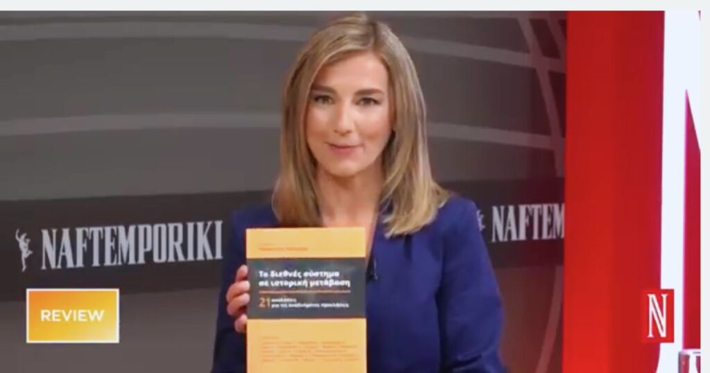 Στην τηλεόραση της Ναυτεμπορικής με την δημοσιογράφο κυρία Ιρένα Αργύρη, ο ομότιμος καθηγητής Διεθνών Σχέσεων και Στρατηγικών Σπουδών Παν/μίου Πειραιά Παναγιώτης Ήφαιστος, επιμελητής του συλλογικού τόμου Το διεθνές σύστημα σε